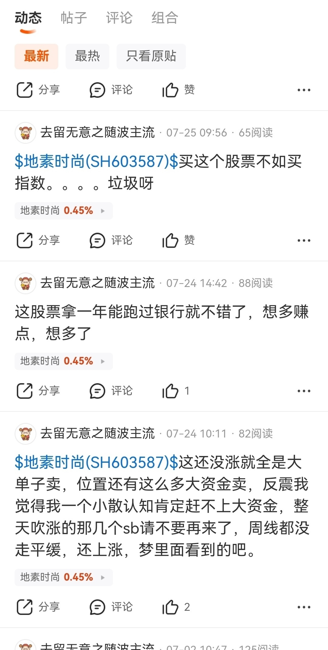 $地素时尚(SH603587)$ 基本面稳健优秀,年利润稳定三亿以上,上市总分红超过融资,还有三十多亿现金资产,年年股票回购,季线底部中长线至少几倍涨幅以上,季线底部十元附近卖出踏空后唱空攻击人的资金北向入场最后买入机会,放量突破年线回踩年线形成日线买点,周线第五浪主升补涨翻倍跨年行情来了