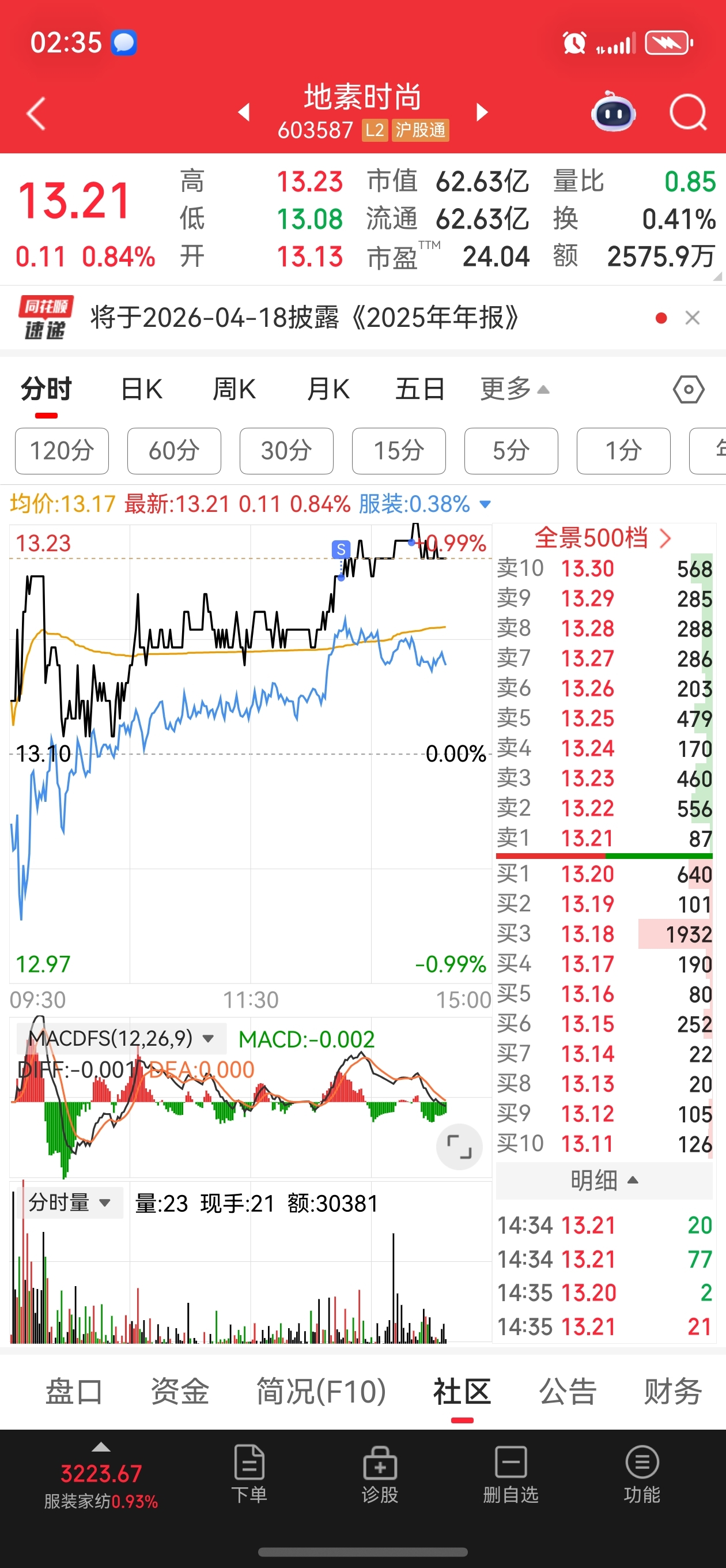 $地素时尚(SH603587)$ 下不来的,因为我减仓了。