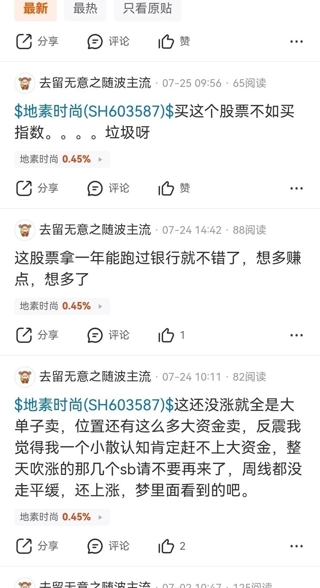 $地素时尚(SH603587)$ 业绩稳定开始增长,和泡泡玛特、各大ip品牌合作业绩反转,扩内需促消费,通胀周期随后而来,消费股的中长线上涨趋势,卖在季线底部十元附近清仓踏空后唱空攻击人的北向资金再次入场,主力成本双底颈线位十五以上不会把筹码低价还出来,放量突破年线回踩年线附近日线买点出现,周线第五浪主升补涨翻倍跨年行情启动,相对于服装板块补涨空间百分之六十以上