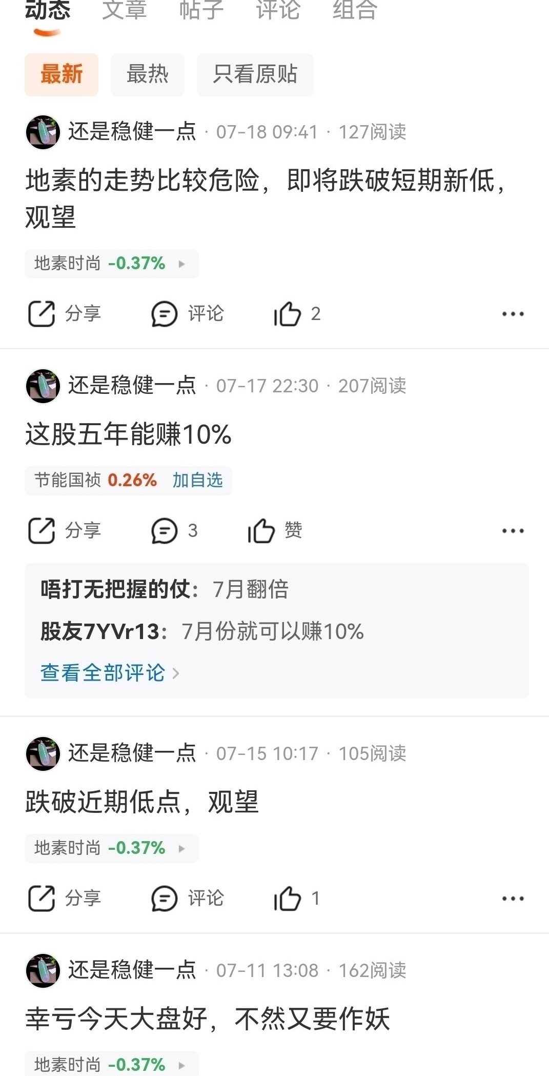 $地素时尚(SH603587)$ 年利润稳定三亿以上,每年股票回购,每年高分红,上市总分红超过融资额,现金资产还有三十多亿左右,基本面优秀稳健,消费龙头至少三十倍估值,目前牛市至少六十倍估值,大盘服装板块地素周线上涨趋势,季线底部十元附近清仓踏空后唱空攻击人的资金最后买入机会,放量突破年线回踩年线周线第五浪主升补涨也至少翻倍,服装板块平均市盈率八十倍左右