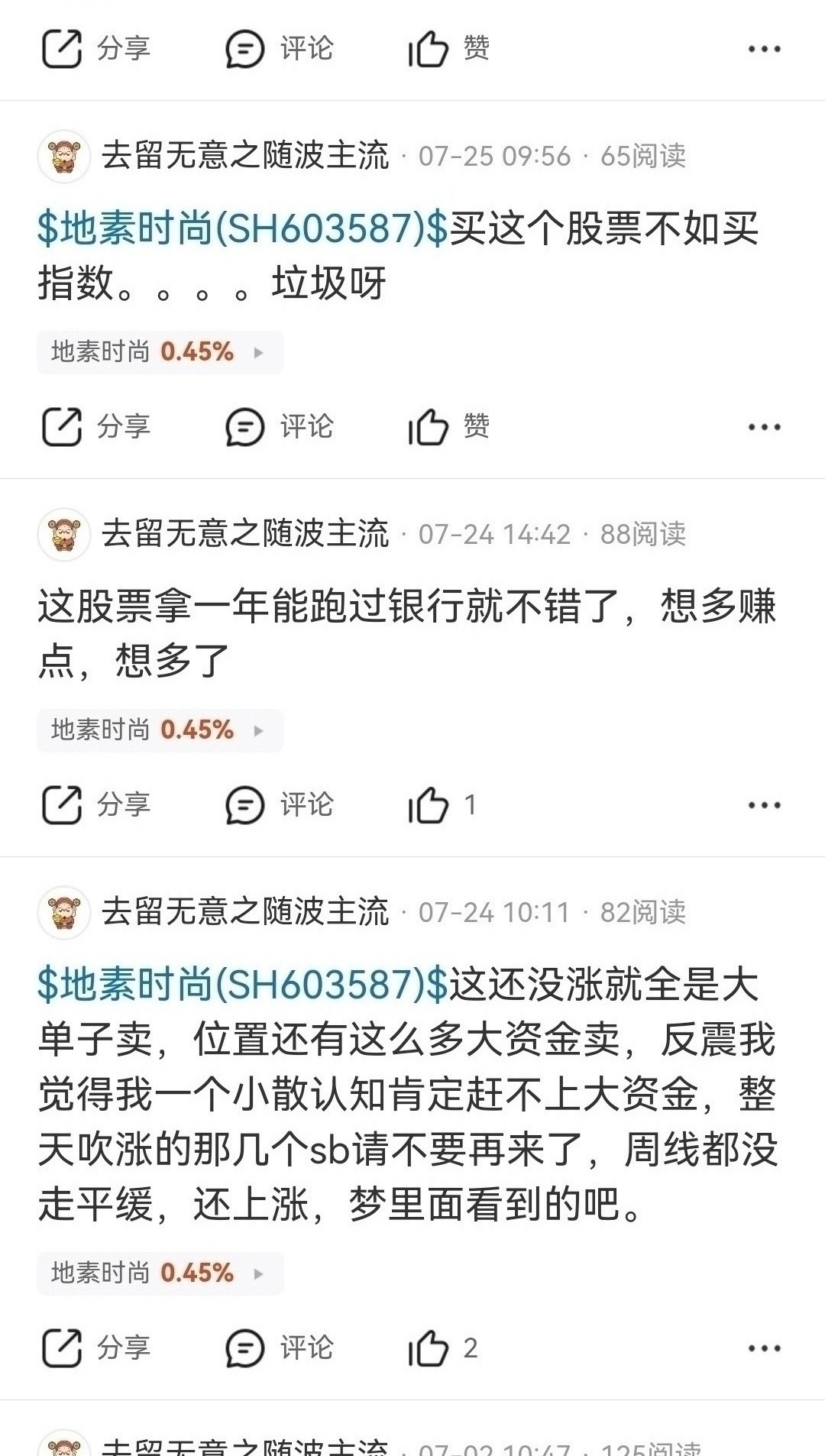 $地素时尚(SH603587)$ 投资卫哲基金,参股国联民生证券,去年双十一销量大增百分之六十,和泡泡玛特合作业绩大增,前年四季度业绩低基数,去年四季度业绩必然大增,卖在季线底部十元左右唱空攻击人的资金最后买入机会,季线底部中长线十倍涨幅以上,放量突破年线回踩有效确认年线支撑,周线第五浪主升补涨翻倍跨年行情启动,服装板块从前年低点涨幅翻倍,平均市盈率八十倍左右,短期内补涨空间可观