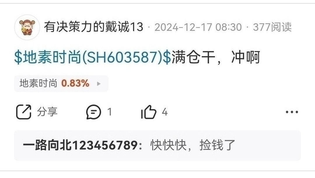 温馨提示: 1.根据《证券法》规定,禁止编造、传播虚假信息或者误导性信息,扰乱证券市场;2.用户在本社区发表的所有资料、言论等仅代表个人观点,与本网站立场无关,不对您构成任何投资建议。用户应基于自己的独立判断,自行决定证券投资并承担相应风险。《东方财富社区管理规定》