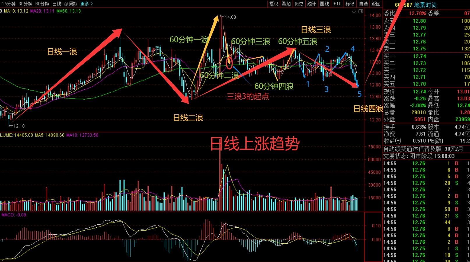 $地素时尚(SH603587)$ 北向资金前年九月十元附近清仓踏空,北向资金高买低卖逆服装板块打压股价,日线第三浪涨幅不如意,目前日线第四浪六十分钟第五浪调整,日线第五浪主升大家要把握好,满仓买入拿稳,不要受北向托唱空影响了