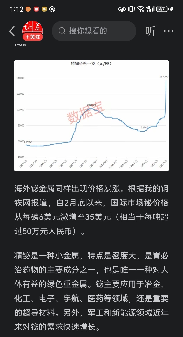 $高能环境(SH603588)$ 周一还买得到锤子!。根据我的钢铁网报道,自2月底以来,国际市场铋价格从每磅6美元激增至35美元(相当于每吨超过50万元人民币)
