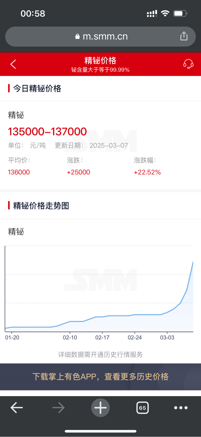 。每天刷新精铋价格,要是再涨下去不得了。