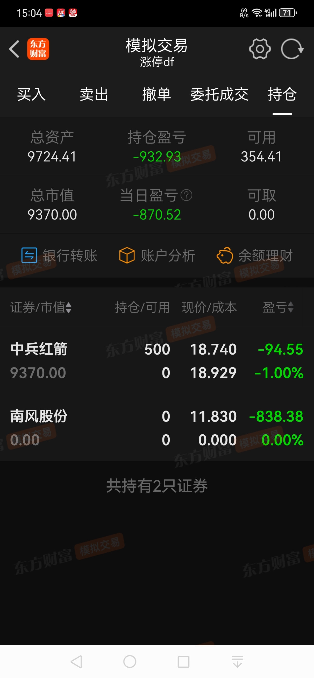 $高能环境(SH603588)$ #实盘记录# 14万资金实盘第304天,现全没了(借钱9万帮解套),借钱9万元又变2.5万元,14万解套了又亏损完了。借钱9万又亏6.5万元。破3万元了。