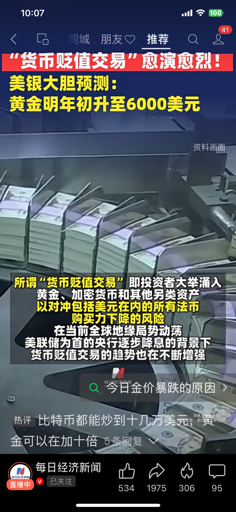 $高能环境(SH603588)$ 当前黄金价格是4044美元/盎司。近期,高盛、摩根大通、惠顿、桥水基金大幅看好黄金。今天又一家具有世界级影响力的机构--美银看好,预测明年初达到6000美元/盎司。追捧黄金俨然成为全球趋势。
