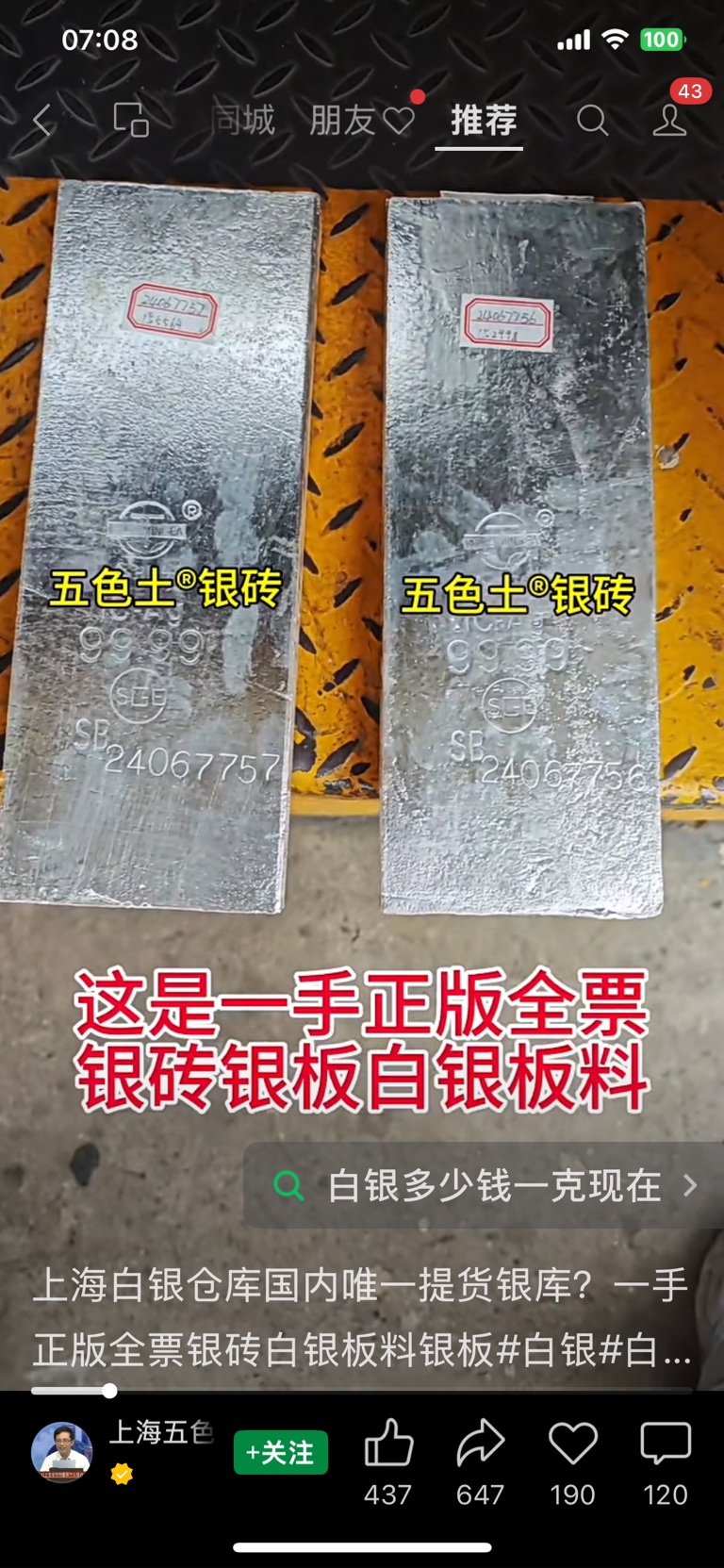 $高能环境(SH603588)$ 因为拥有高能环境,相当于拥有一定份额的白银。白银浇铸时因为其特有的纹路又称作纹银。让我们怀着美好心情,欣赏一下上周五(10月10日)上海黄金交易所仓库交割的银板上的纹路。