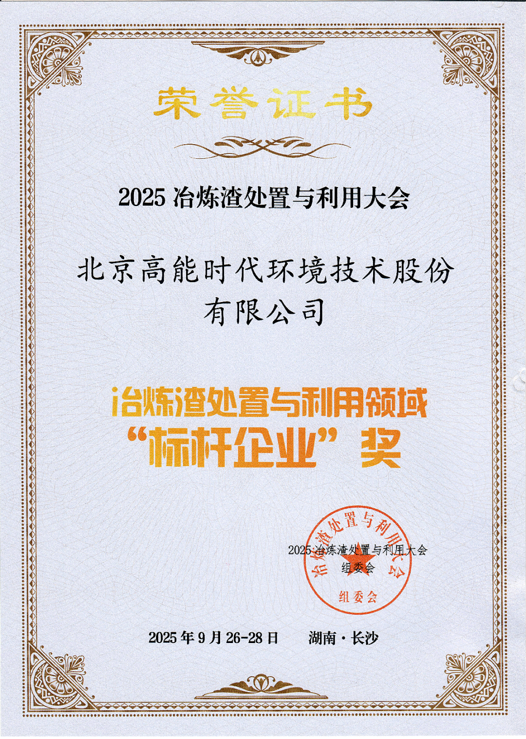 近日,2025冶炼渣处置与利用大会在湖南长沙顺利举办,大会以“低碳、高效、资源化”为主题,来自全国的高等院校、科研机构和企事业单位200余名代表参加会议。大会同期对冶炼渣处置与利用行业优秀的个人、团队、企业进行了表彰,高能环境凭借在固废危废资源化利用领域的前后端一体化全产业链布局及高质量规模化运营水平,荣获冶炼渣处置与利用领域“标杆企业”奖。