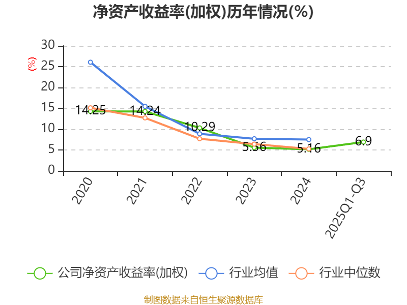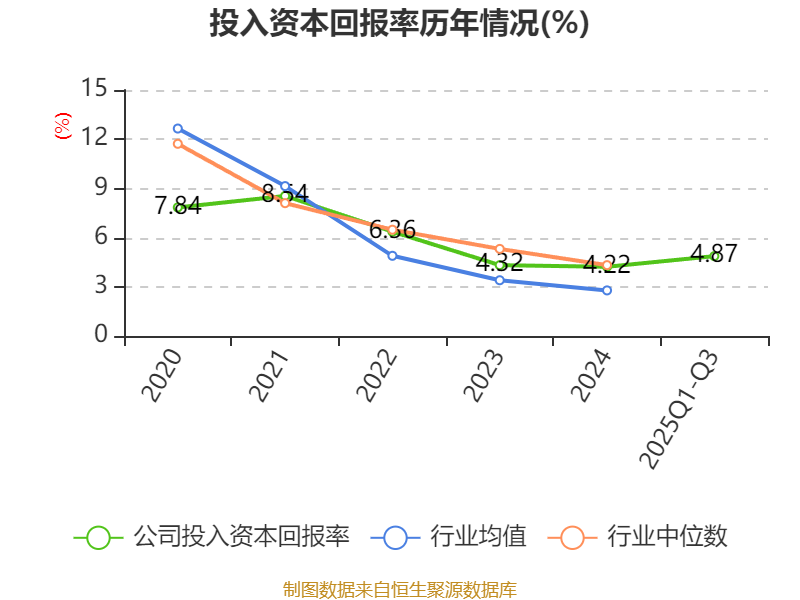 盈利能力方面, 2025年前三季度公司加权平均净资产收益率为6.9%,同比上升1.05个百分点。公司2025年前三季度投入资本回报率为4.87%,较上年同期上升0.62个百分点。