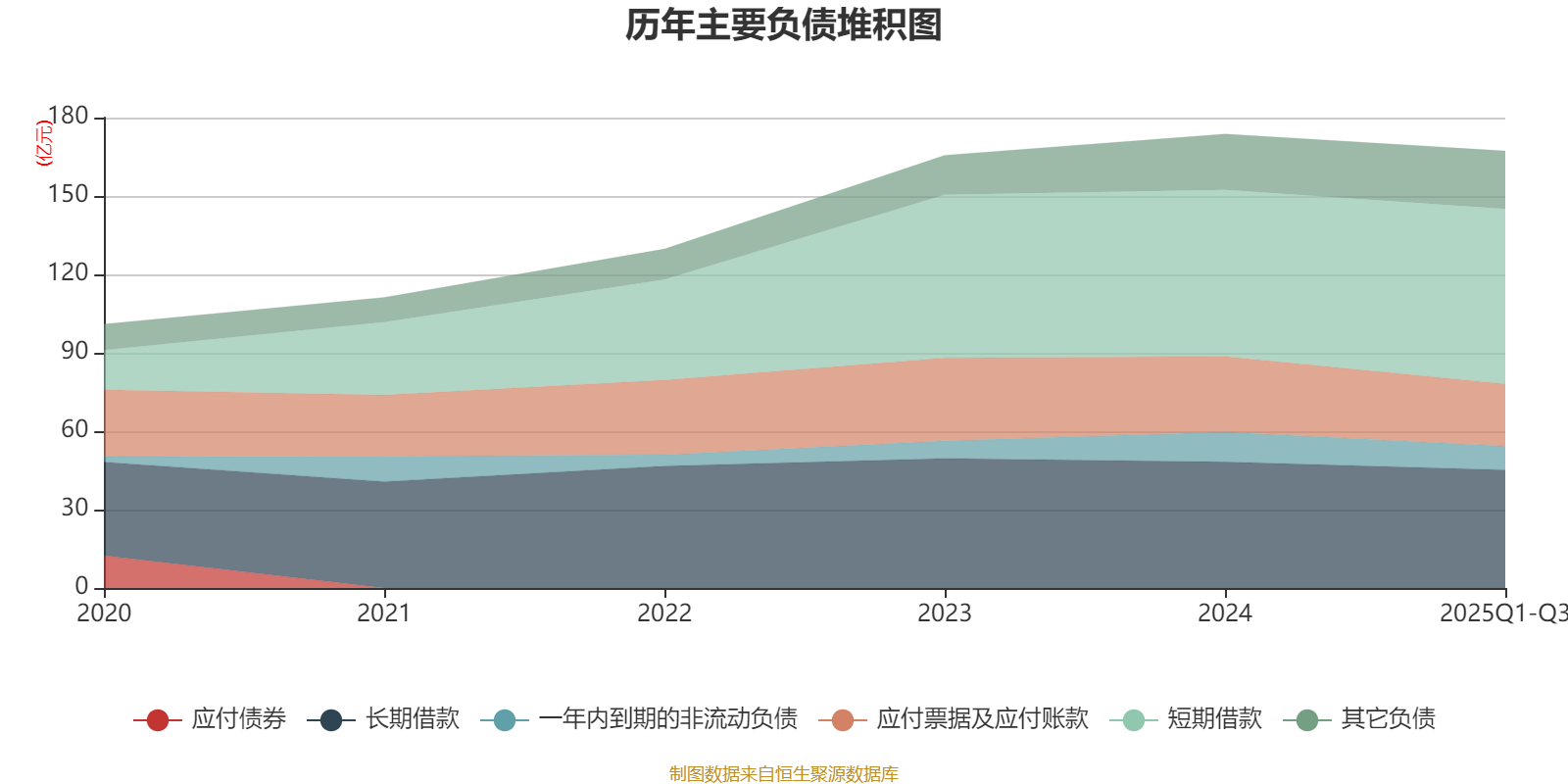 负债重大变化方面,截至2025年三季度末,公司应付票据及应付账款较上年末减少17.3%,占公司总资产比重下降1.79个百分点;短期借款较上年末增加5.05%,占公司总资产比重上升1.28个百分点;长期借款较上年末减少6.29%,占公司总资产比重下降1.05个百分点;一年内到期的非流动负债较上年末减少21.27%,占公司总资产比重下降0.89个百分点。