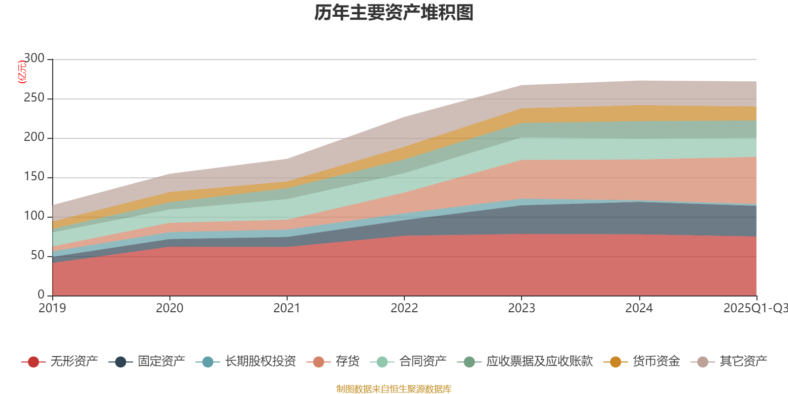 资产重大变化方面,截至2025年三季度末,公司存货较上年末增加16.11%,占公司总资产比重上升3.14个百分点;合同资产较上年末减少9.92%,占公司总资产比重下降0.94个百分点;无形资产较上年末减少3.49%,占公司总资产比重下降0.89个百分点;货币资金较上年末减少12.08%,占公司总资产比重下降0.87个百分点。