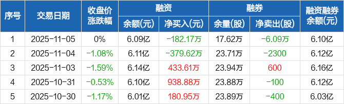 高能环境:融资净偿还182.17万元,融资余额6.09亿元(11-05)