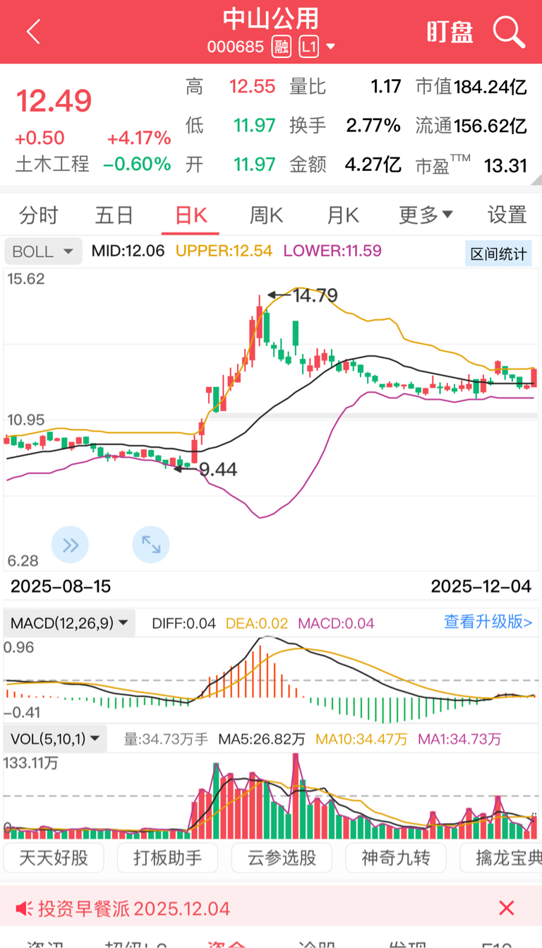 $高能环境(SH603588)$ 中山公用与高能环境同属环保板块。中山公用启动了,某种程度上来说,预示这些业绩稳定、安全可靠、分红派息高的板块在年底到来、年报行情开始之际开始要被资金追捧了。