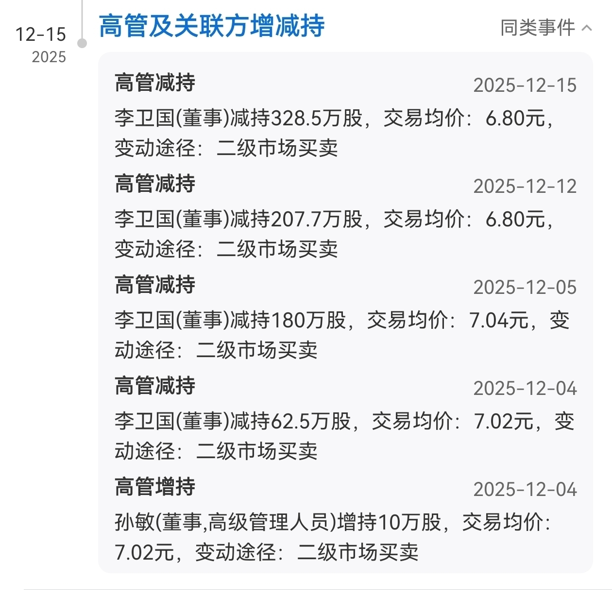 董事长李卫国 最最清楚公司什么状况,公告截止到12月22日【周一】共要减持 4570万股,目前已累计减持778.7万股,还有3792万股没有减持,最后三个交易日预计要加速抛售了