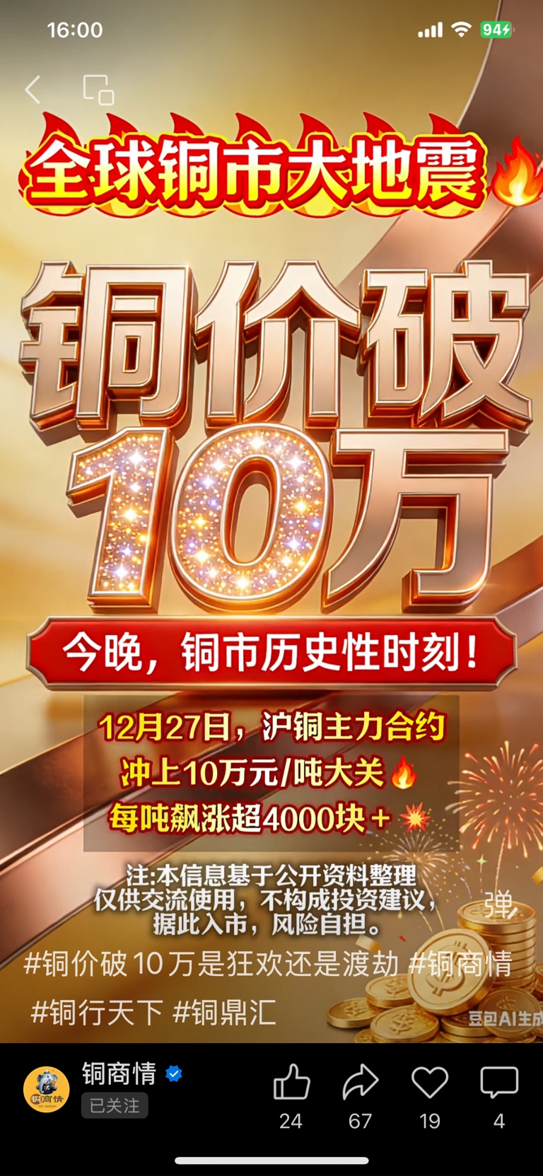 $高能环境(SH603588)$ 高能环境10.5万吨铜,产值就达105亿。