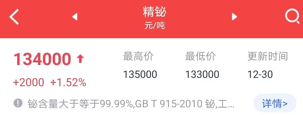 $高能环境(SH603588)$ 铋价开始上行上涨