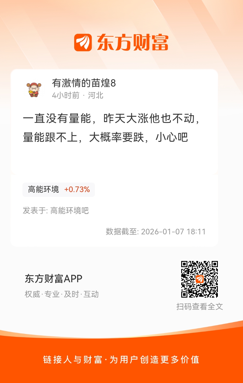 温馨提示: 1.根据《证券法》规定,禁止编造、传播虚假信息或者误导性信息,扰乱证券市场;2.用户在本社区发表的所有资料、言论等仅代表个人观点,与本网站立场无关,不对您构成任何投资建议。用户应基于自己的独立判断,自行决定证券投资并承担相应风险。《东方财富社区管理规定》