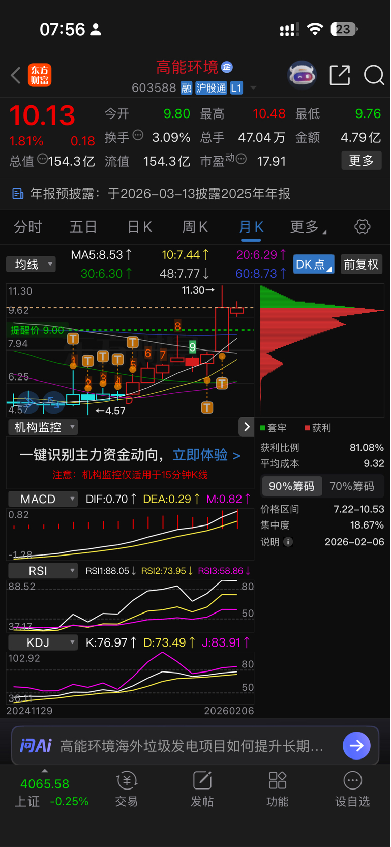 $高能环境(SH603588)$ 调整到8.7五月线再上