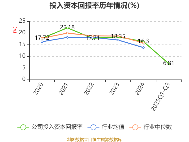 盈利能力方面, 2025年前三季度公司加权平均净资产收益率为7.06%,同比下降6.06个百分点。公司2025年前三季度投入资本回报率为6.81%,较上年同期下降6.33个百分点。