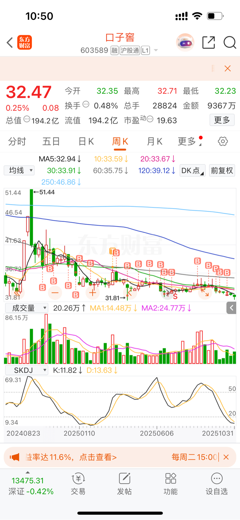 $口子窖(SH603589)$ 我是有多看好你,才会只买不卖,白酒板块闭着眼抓一只都比你强