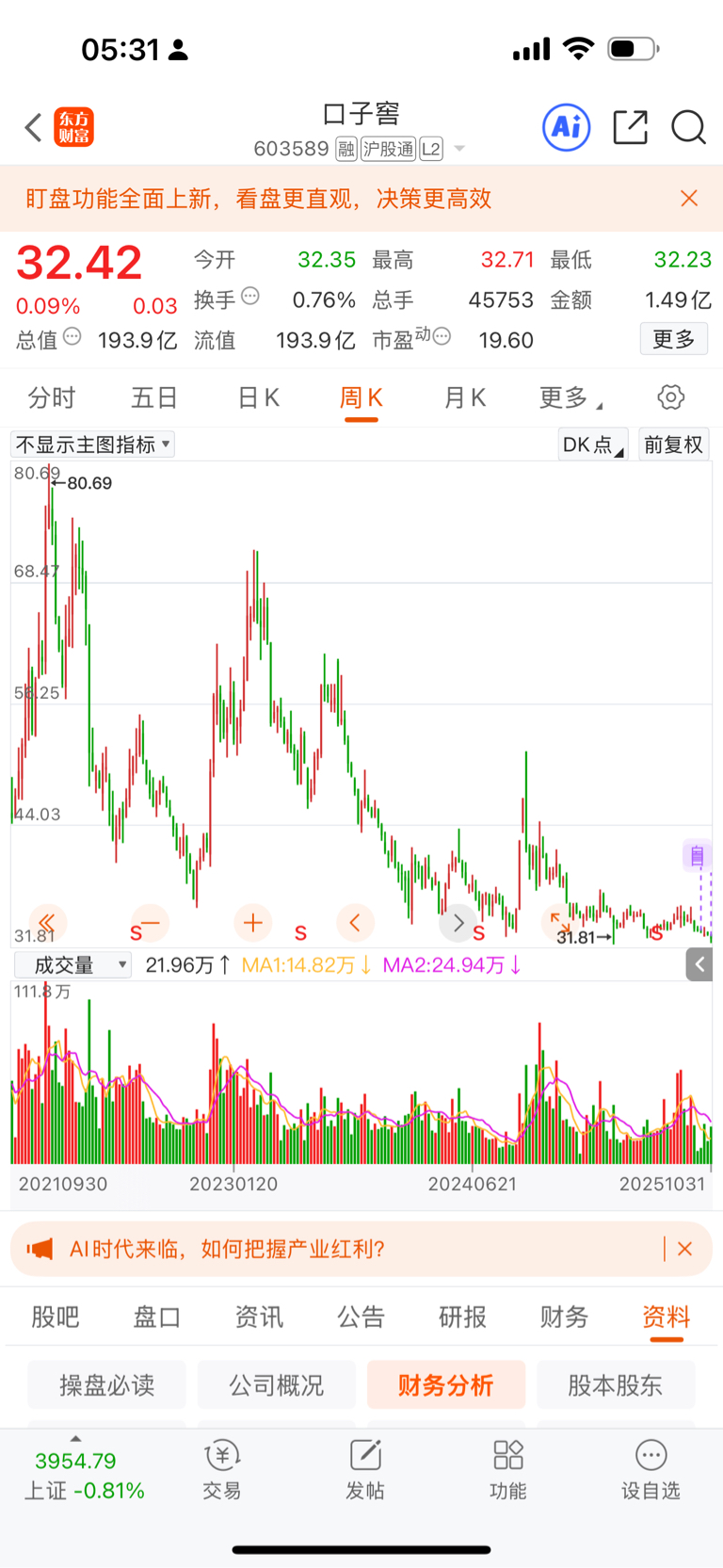 $口子窖(SH603589)$ 太狠了,涨幅全部跌完,杀的真猛!