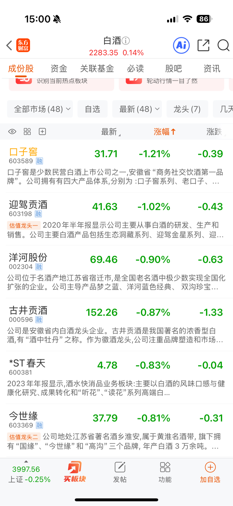 $口子窖(SH603589)$ 哈哈哈匹,白酒倒数第一