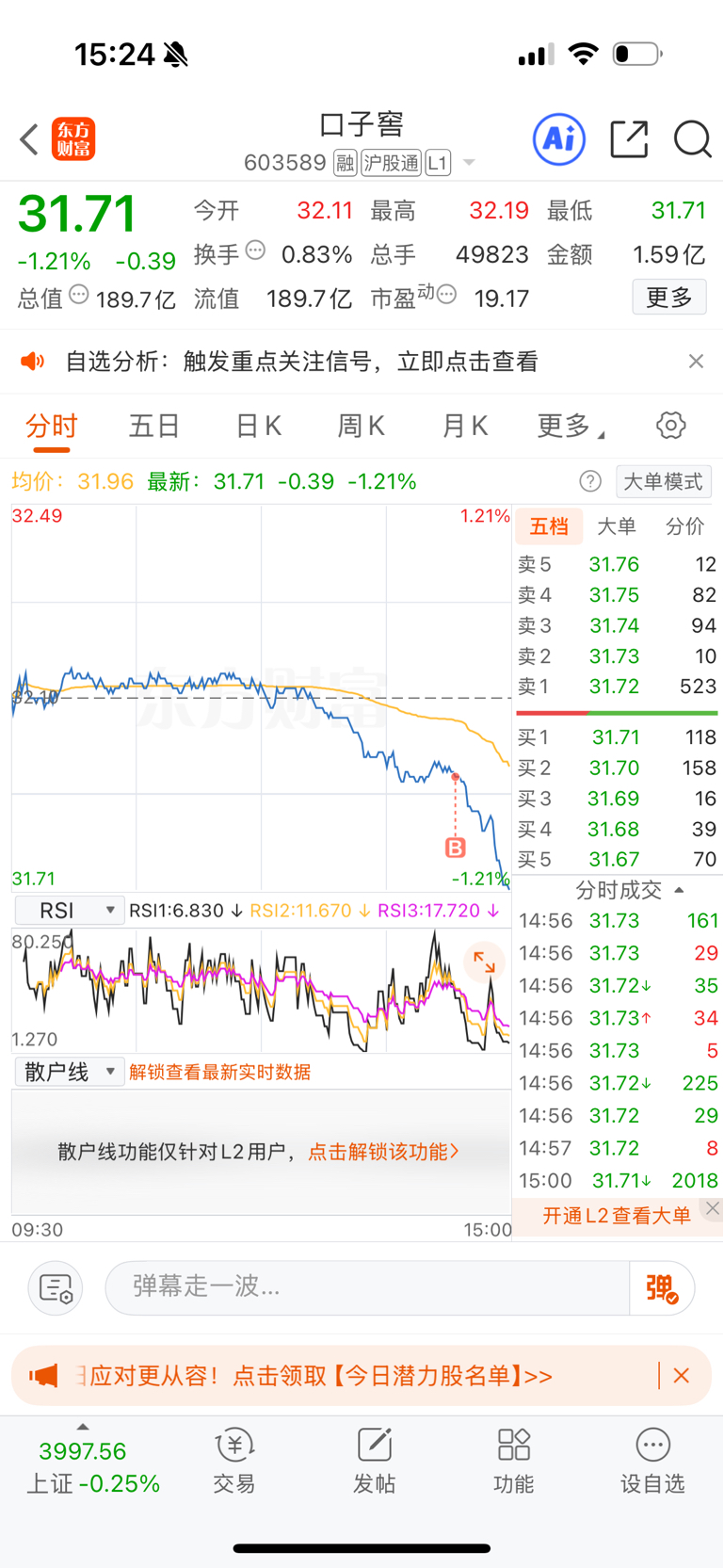 $口子窖(SH603589)$ 怎么还被我买的加速下跌了