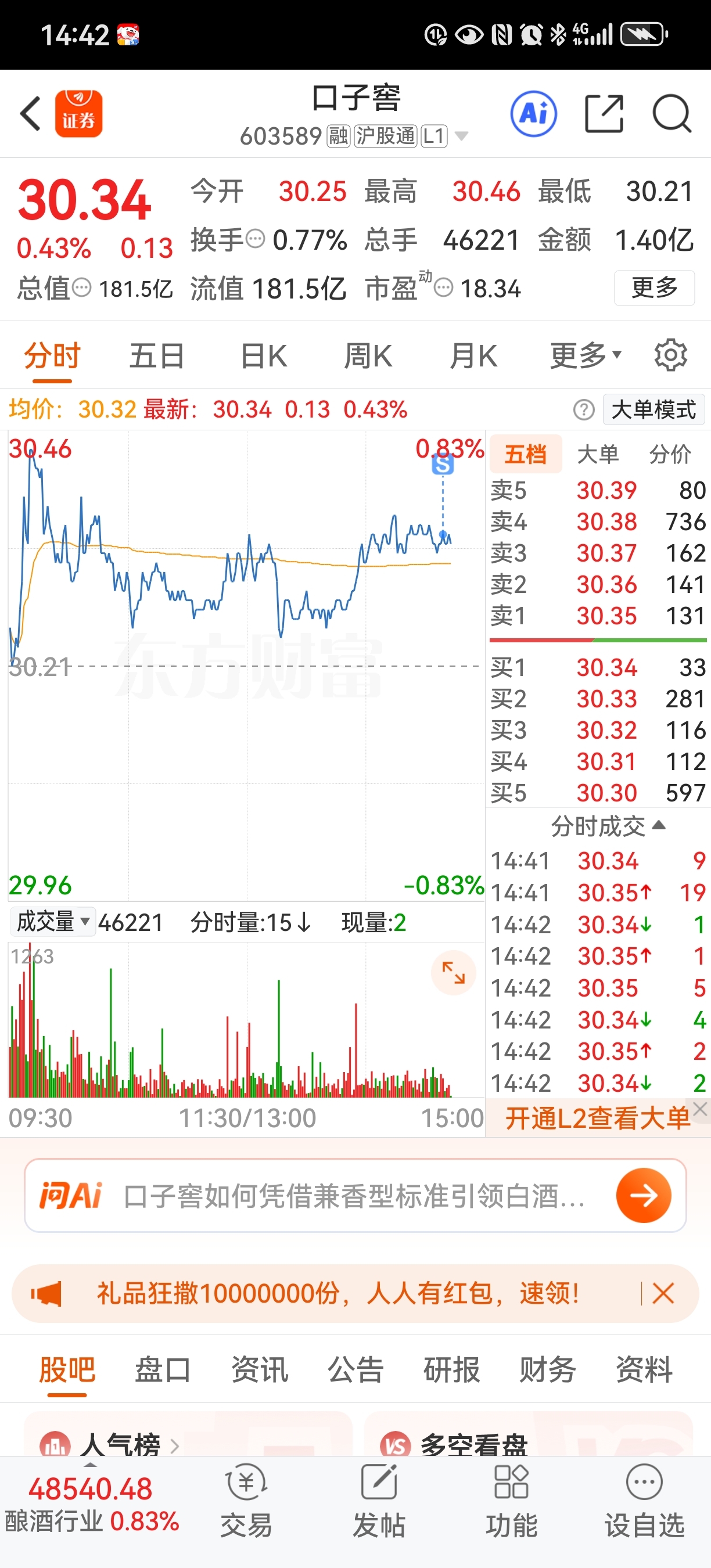 $口子窖(SH603589)$ 不涨买了酒业没希望了
