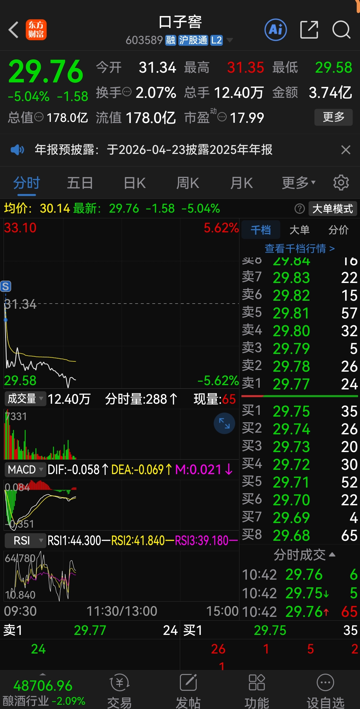 $口子窖(SH603589)$ 跑慢一步都挂树