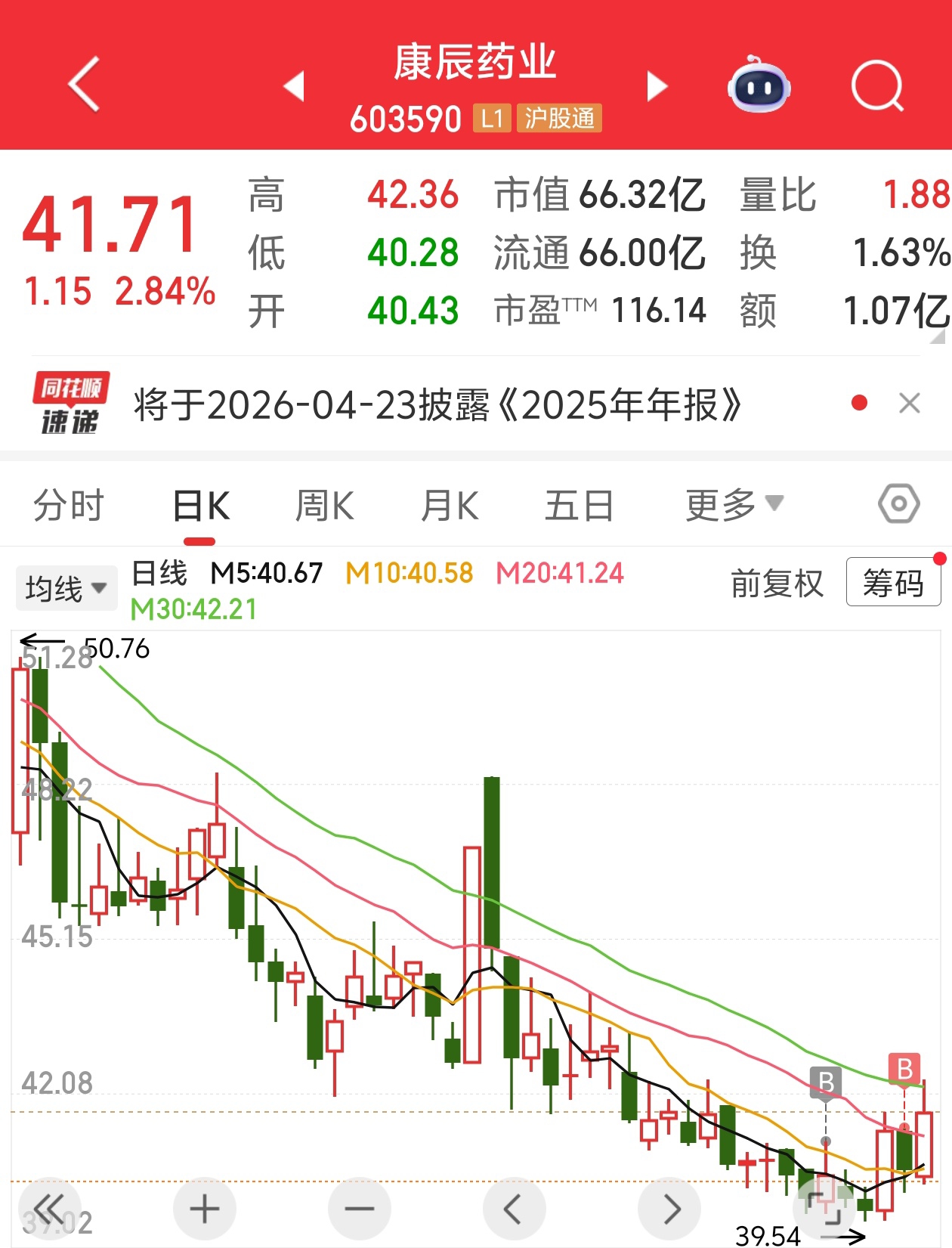 $康辰药业(SH603590)$ 两阳夹一阴突破趋势