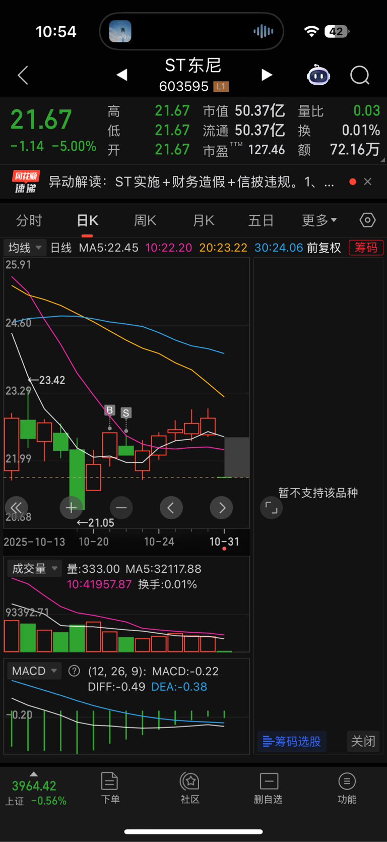 $ST东尼(SH603595)$ 本来想等他启动 结果向下了?…