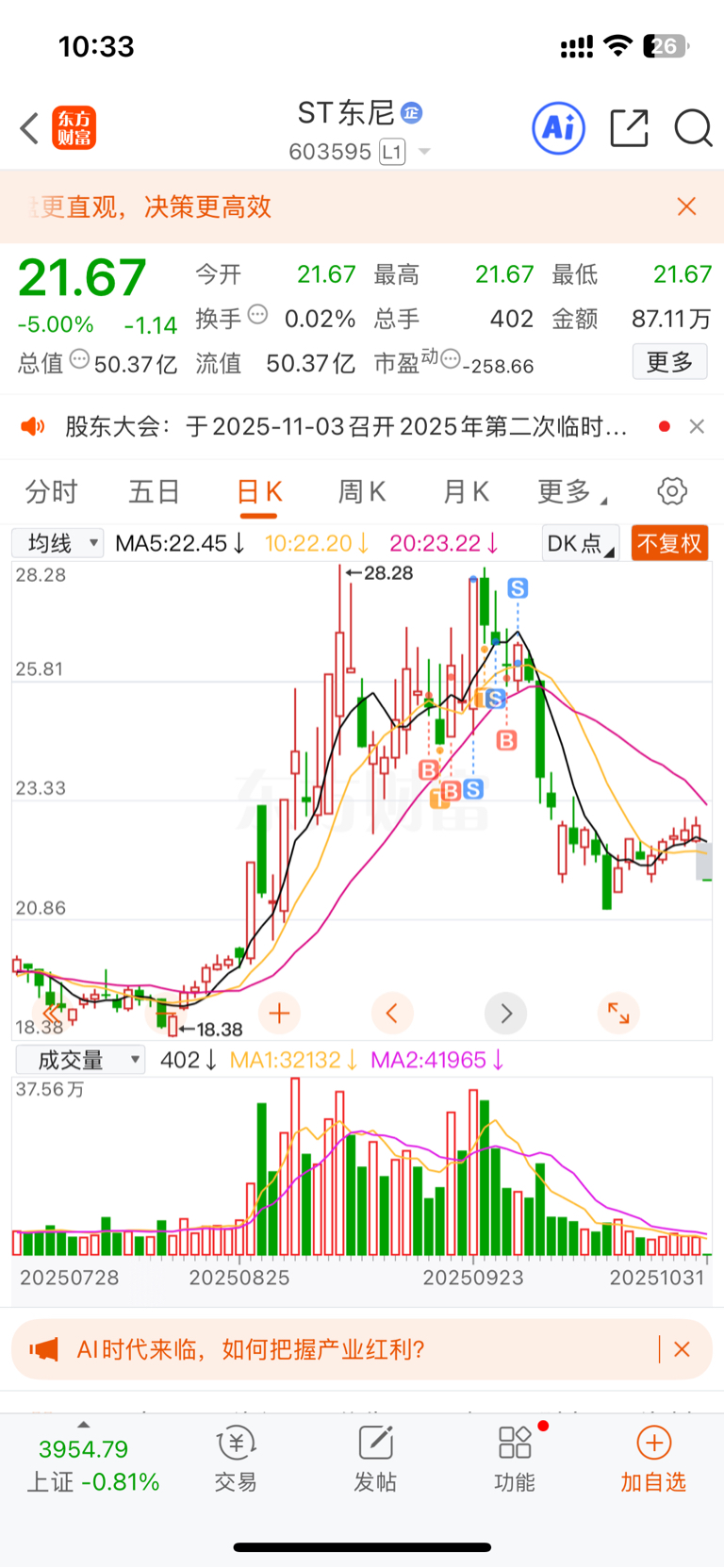 $ST东尼(SH603595)$ 还好全抛了,转眼就ST了