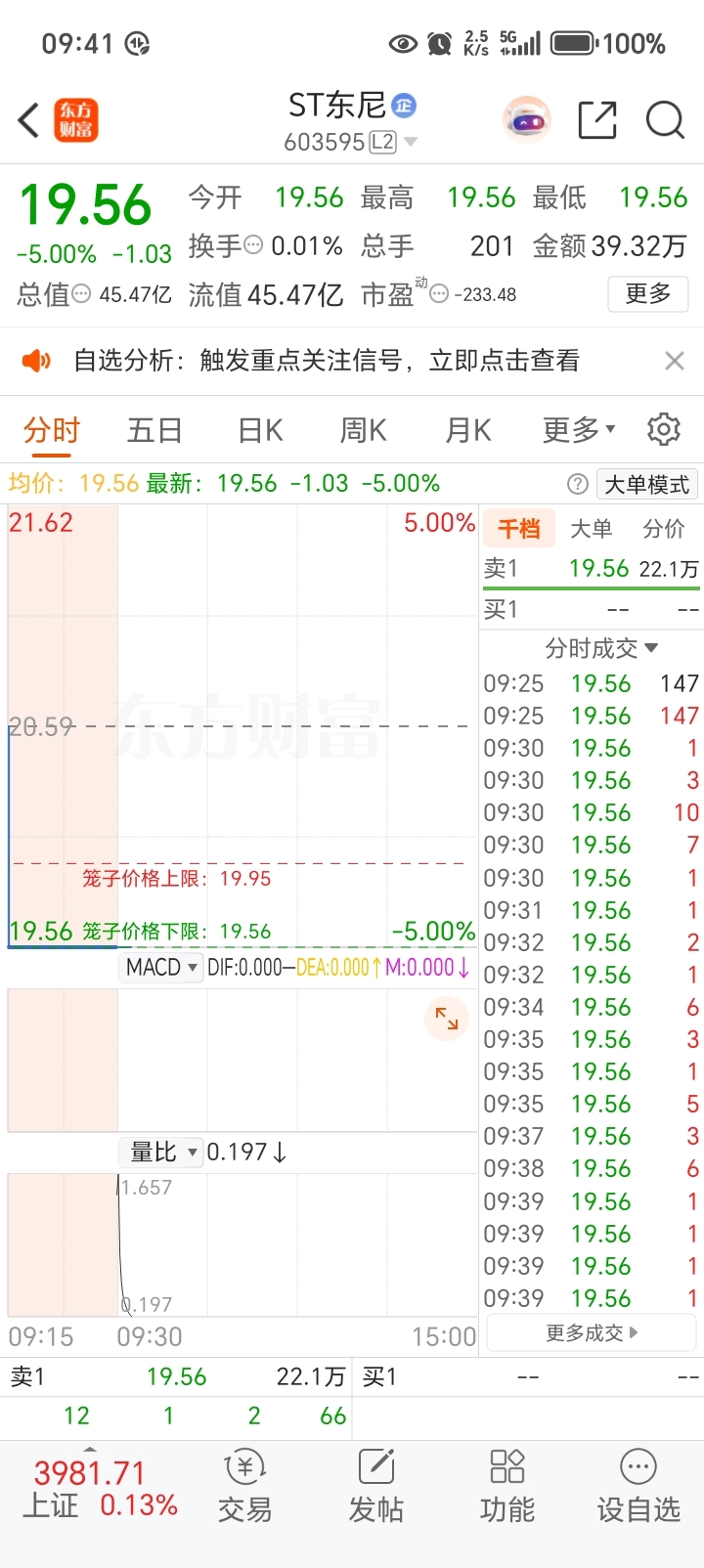 $ST东尼(SH603595)$ 大家快点抢筹,有人开始偷偷的1手1手的吃筹码了。说不定明天就能开板了,大家快点来抢啊。
