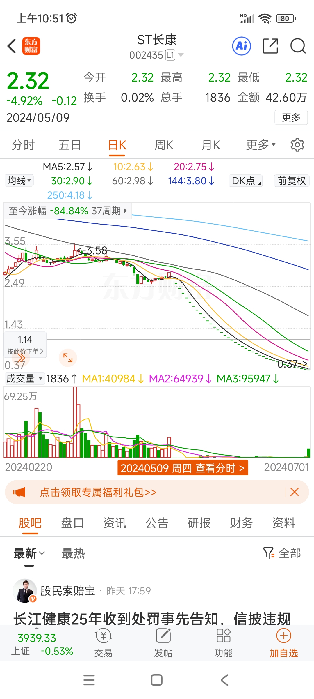 兄弟们,星尘说一句,上次st封板成交量和东尼差不多的是长江健康,现在在三板苟延残
