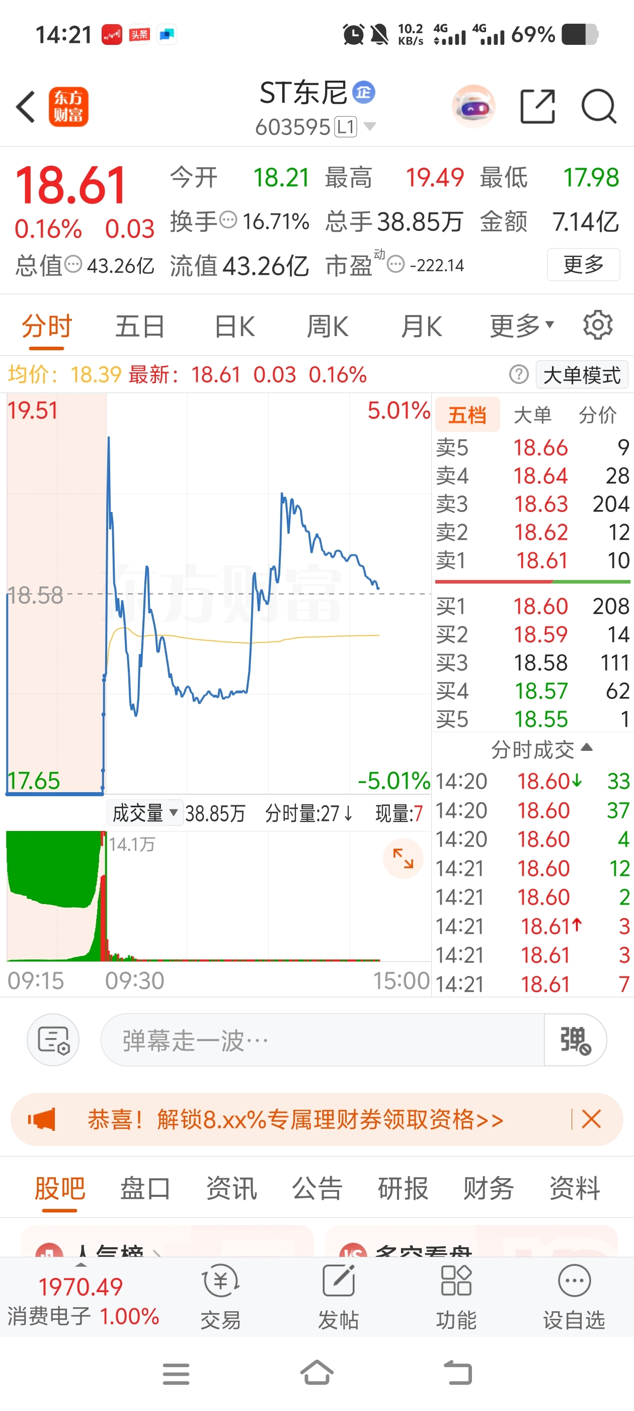 $ST东尼(SH603595)$ 快跑,又要跌停了