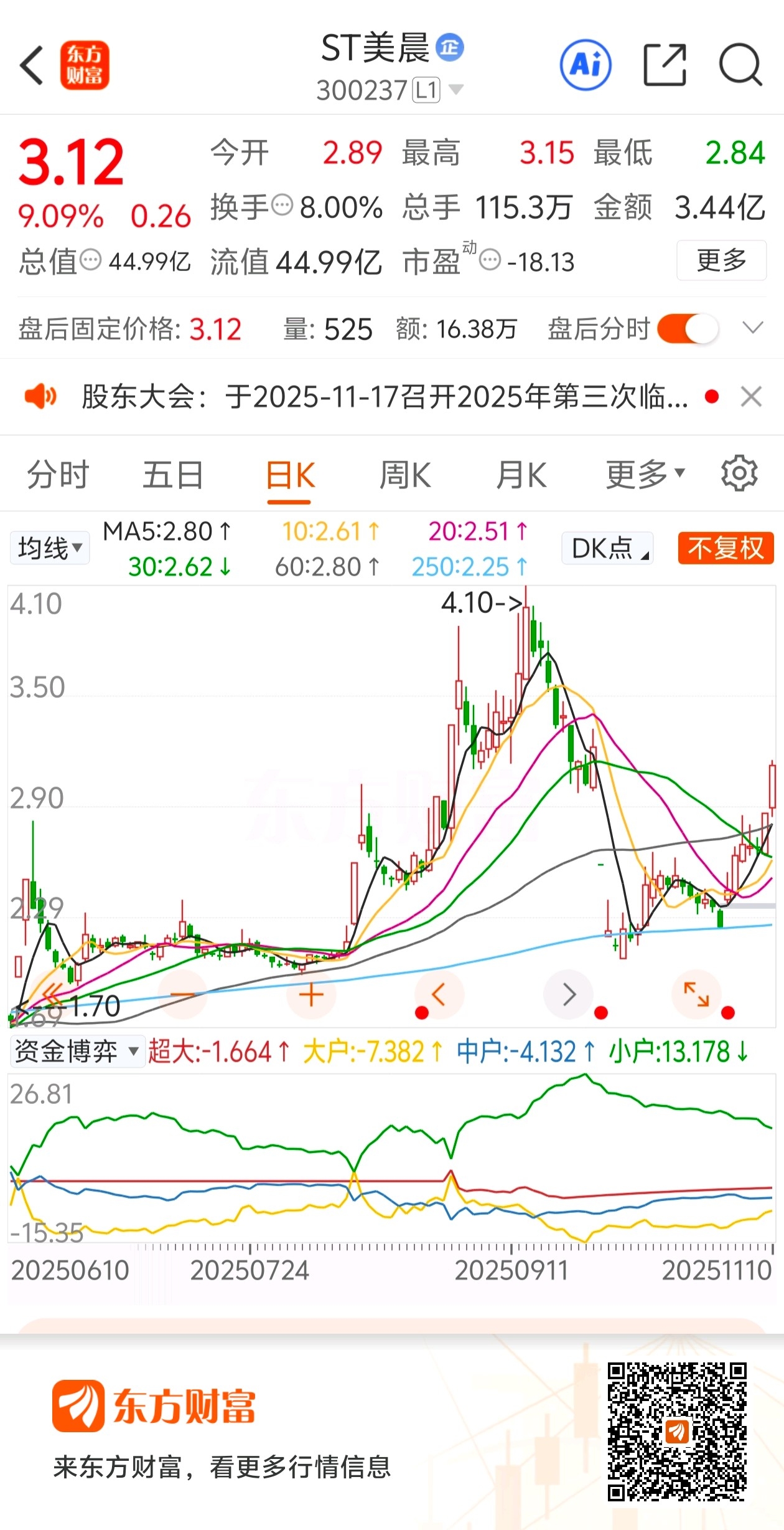 $ST东尼(SH603595)$ 参考ST美晨 开板后下探5个点后上涨50个点,今年ST板块翻倍,新来的ST得补涨