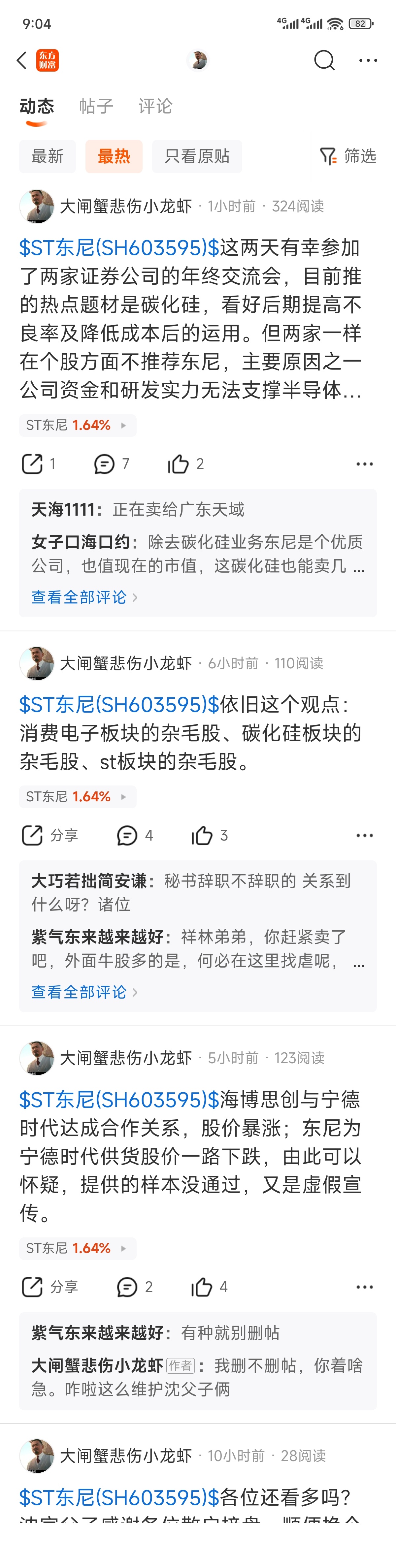 $ST东尼(SH603595)$ 这个杂毛一天在东尼电子发十几个贴子,别有用心