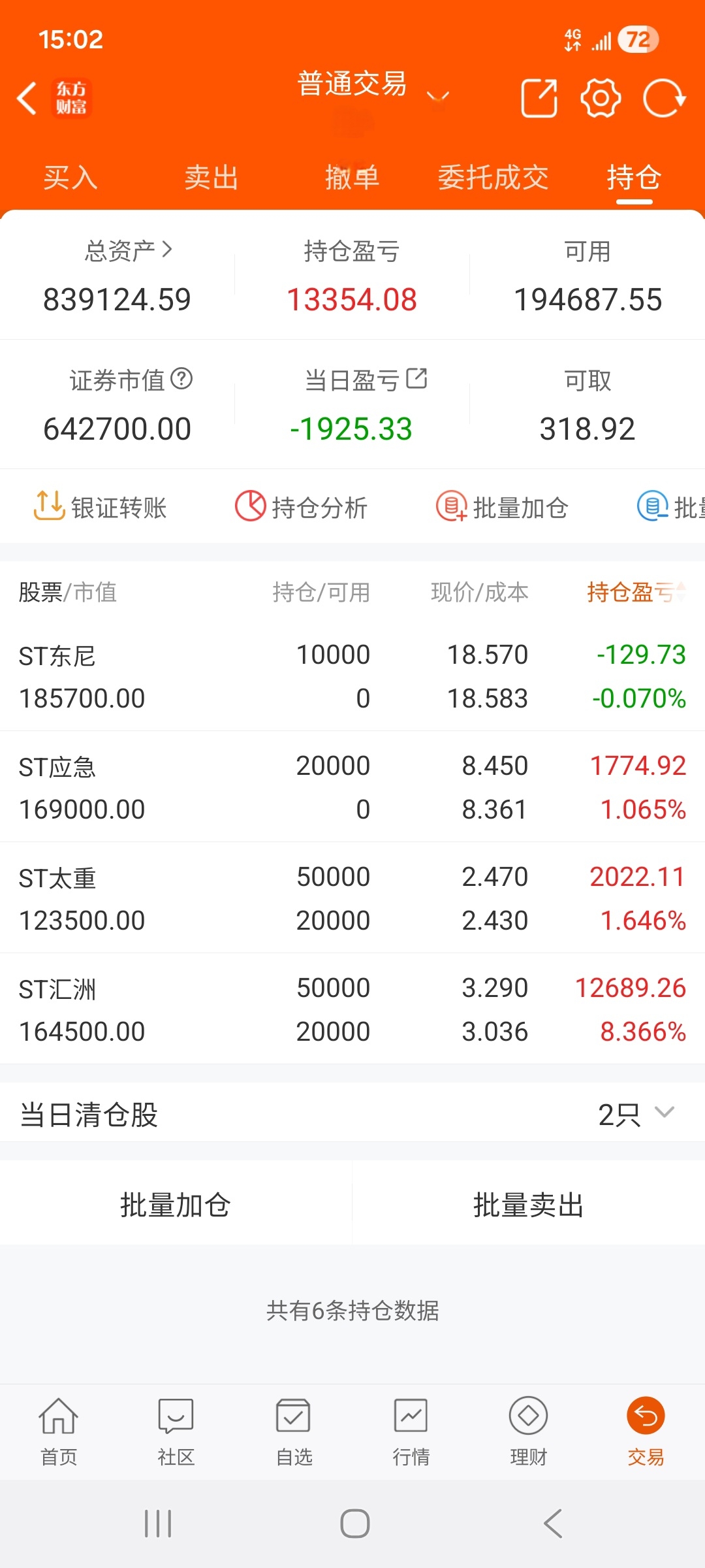 $ST东尼(SH603595)$ $ST汇洲(SZ002122)$ $ST太重(SH600169)$ 这三支票看不清哪个有钱赚,干脆各买一点碰碰运气。