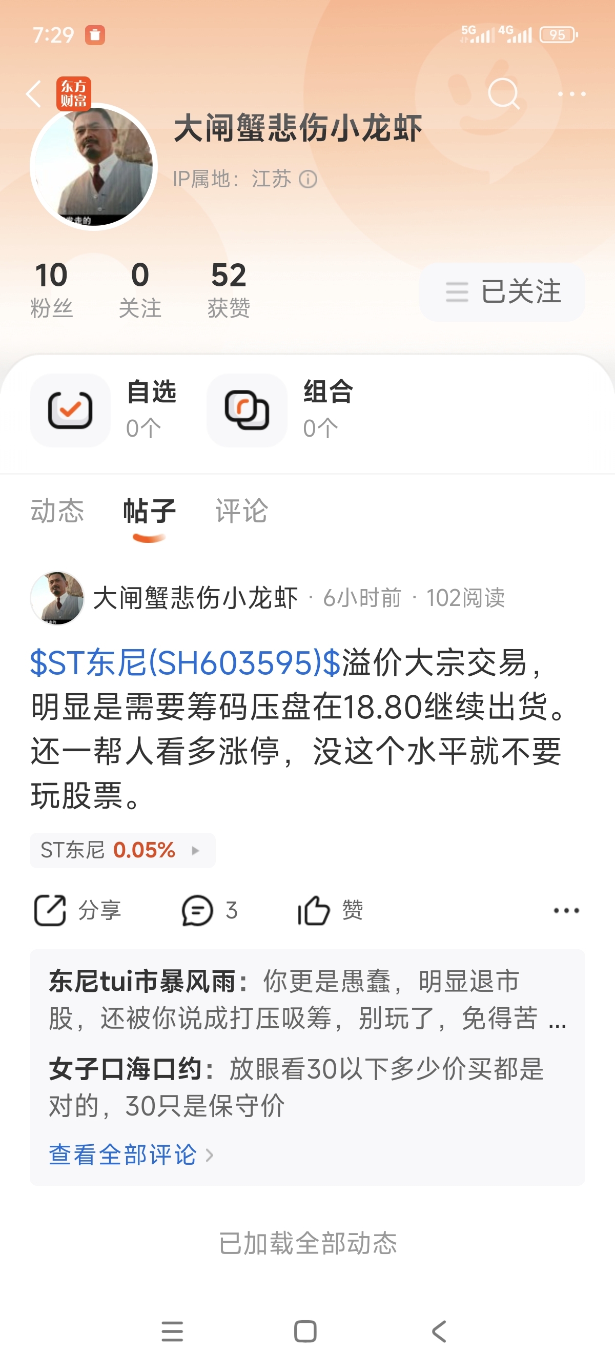 $ST东尼(SH603595)$ 这杂毛又出来了,满嘴跑火车,第二天删掉贴子。