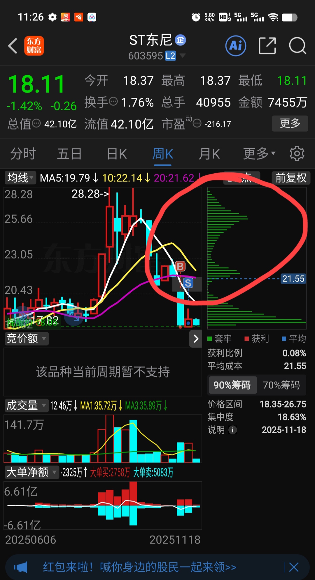 下面还有很多套牢盘,近期不会大涨。除非套牢盘全部割肉。