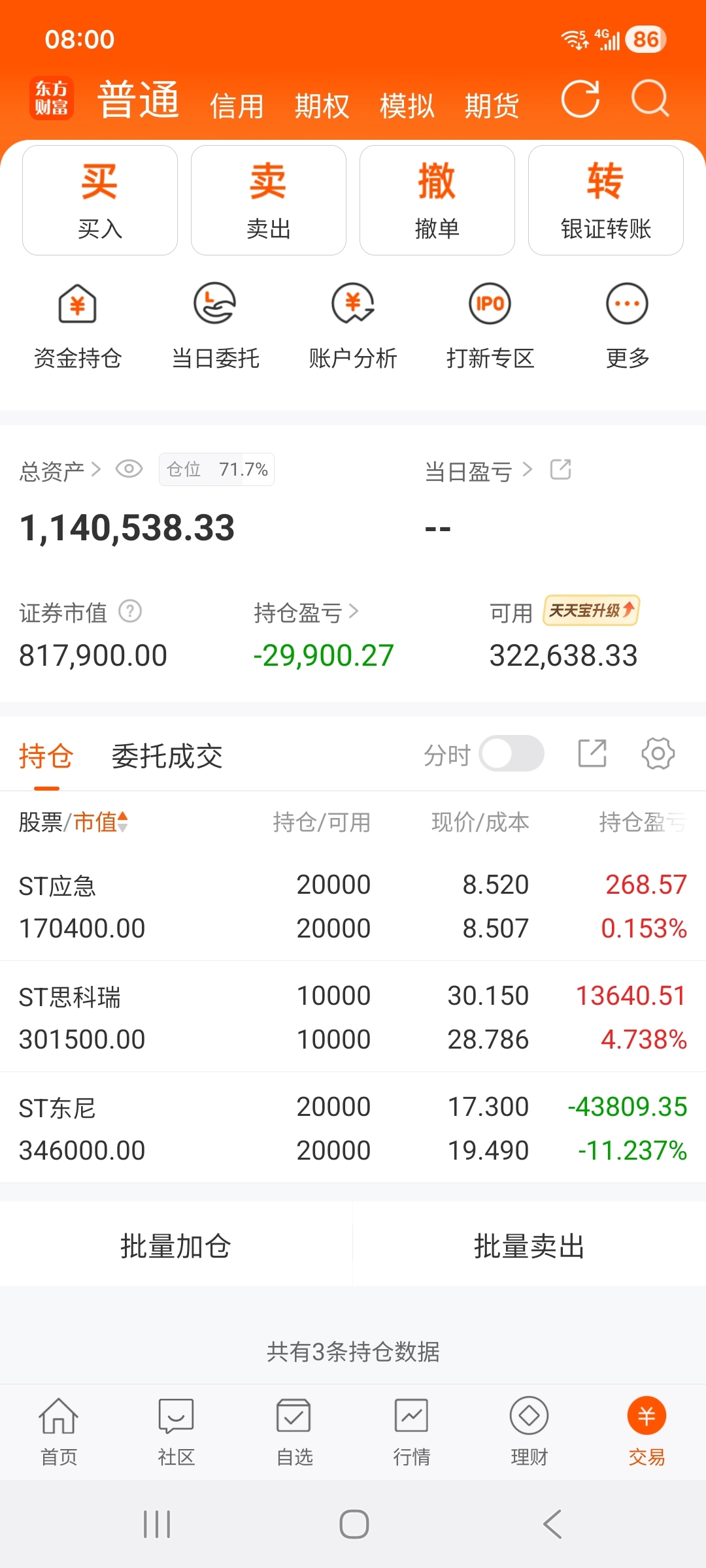 $ST东尼(SH603595)$ $ST思科瑞(SH688053)$ $ST应急(SZ300527)$ 东尼这个渣女害我亏不少钱,今天加大仓位必须从这老尼身上薅点毛