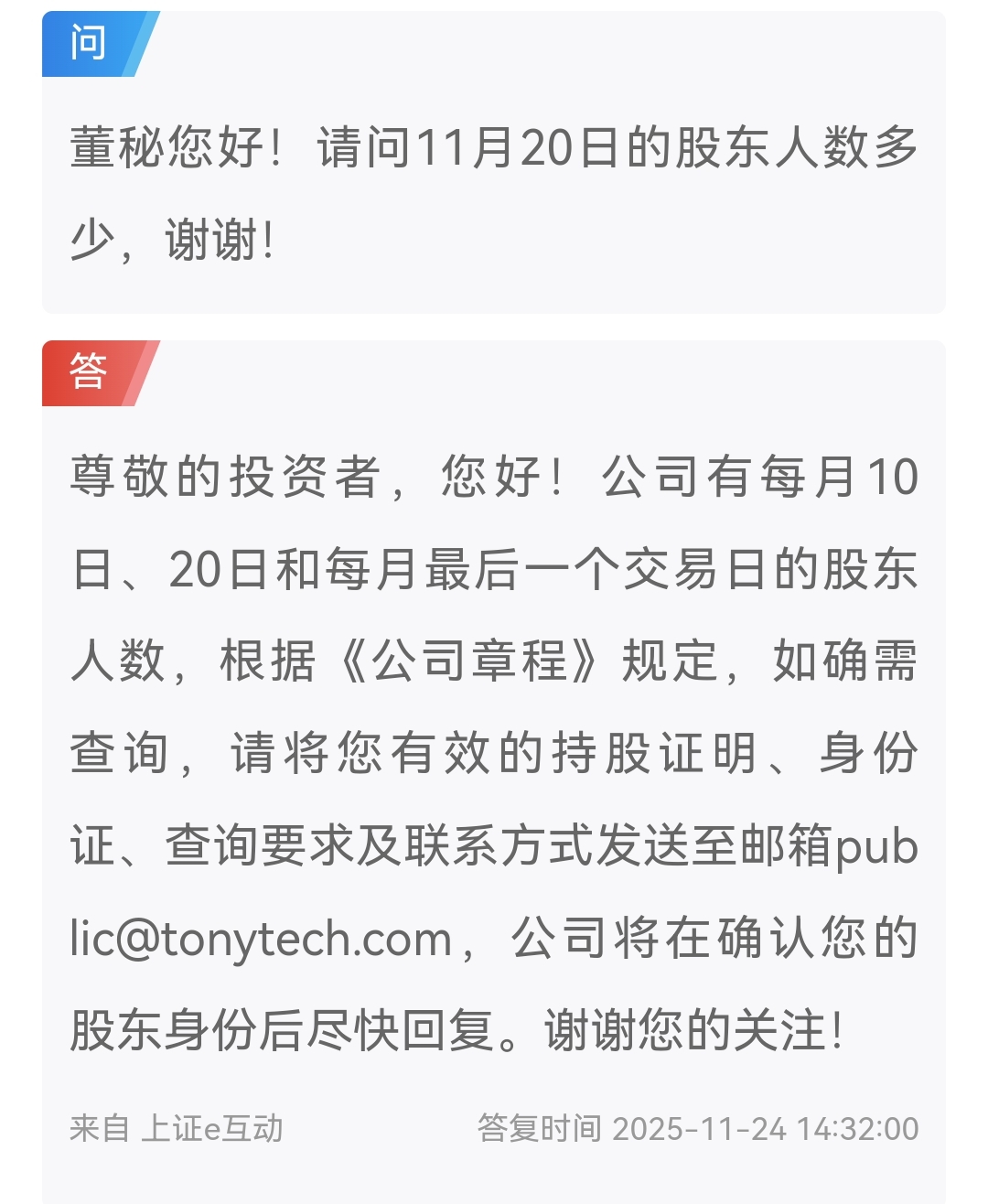 $ST东尼(SH603595)$ 上证e互动,问个股东人数,都要这样遮遮掩掩不愿回答,为何不大方一点?又不是问前十大的股东姓名和持股数量?