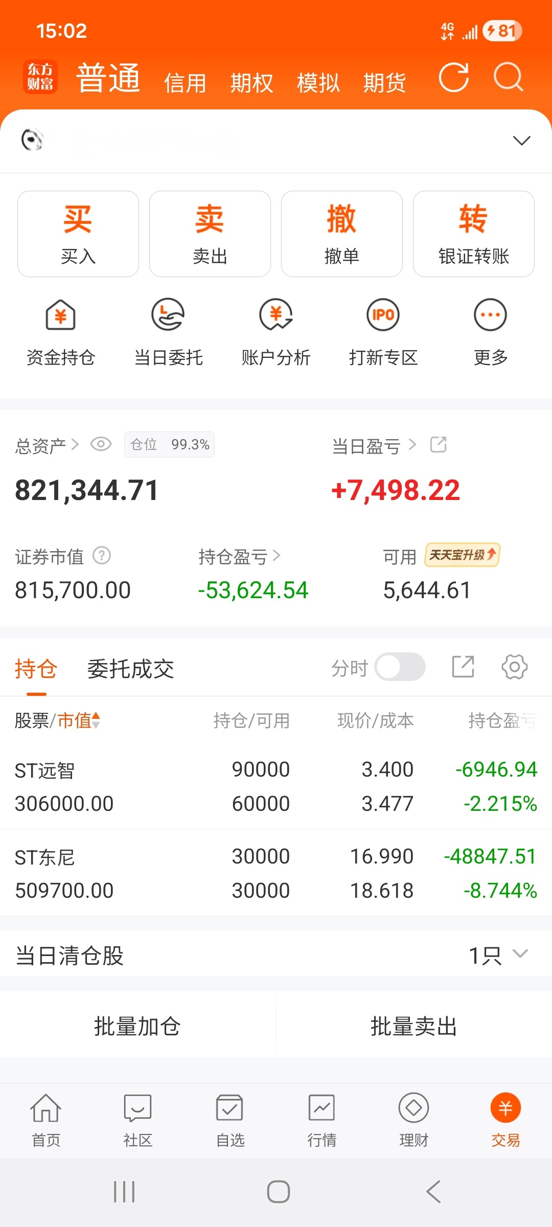$ST东尼(SH603595)$ $ST远智(SZ002689)$ 两支票走势很无聊的一天,就这样躺平吧