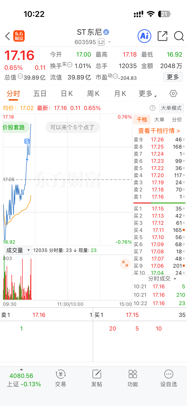 $ST东尼(SH603595)$ 服了,就差我这50手是吧