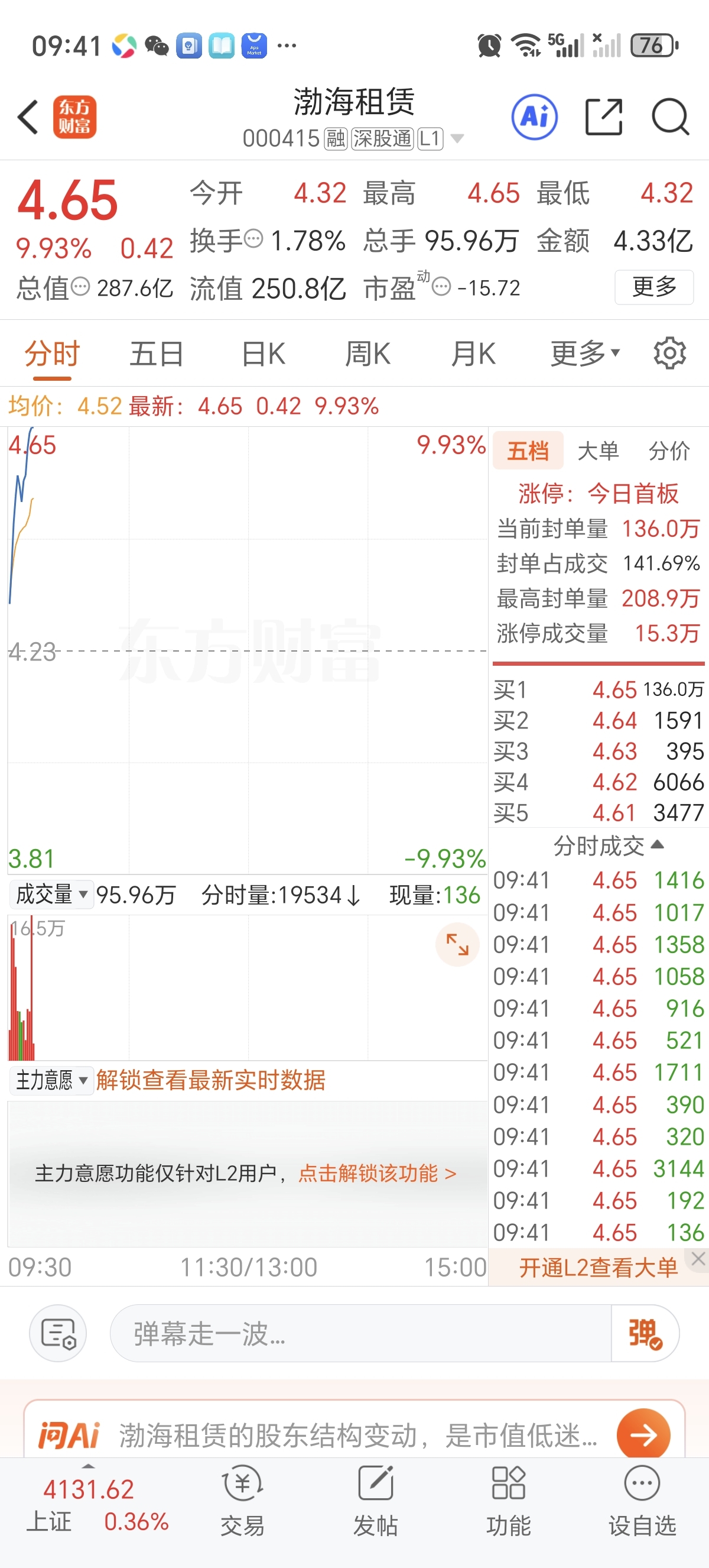 $ST东尼(SH603595)$ 真实市盈只有10倍市盈的渤海板了