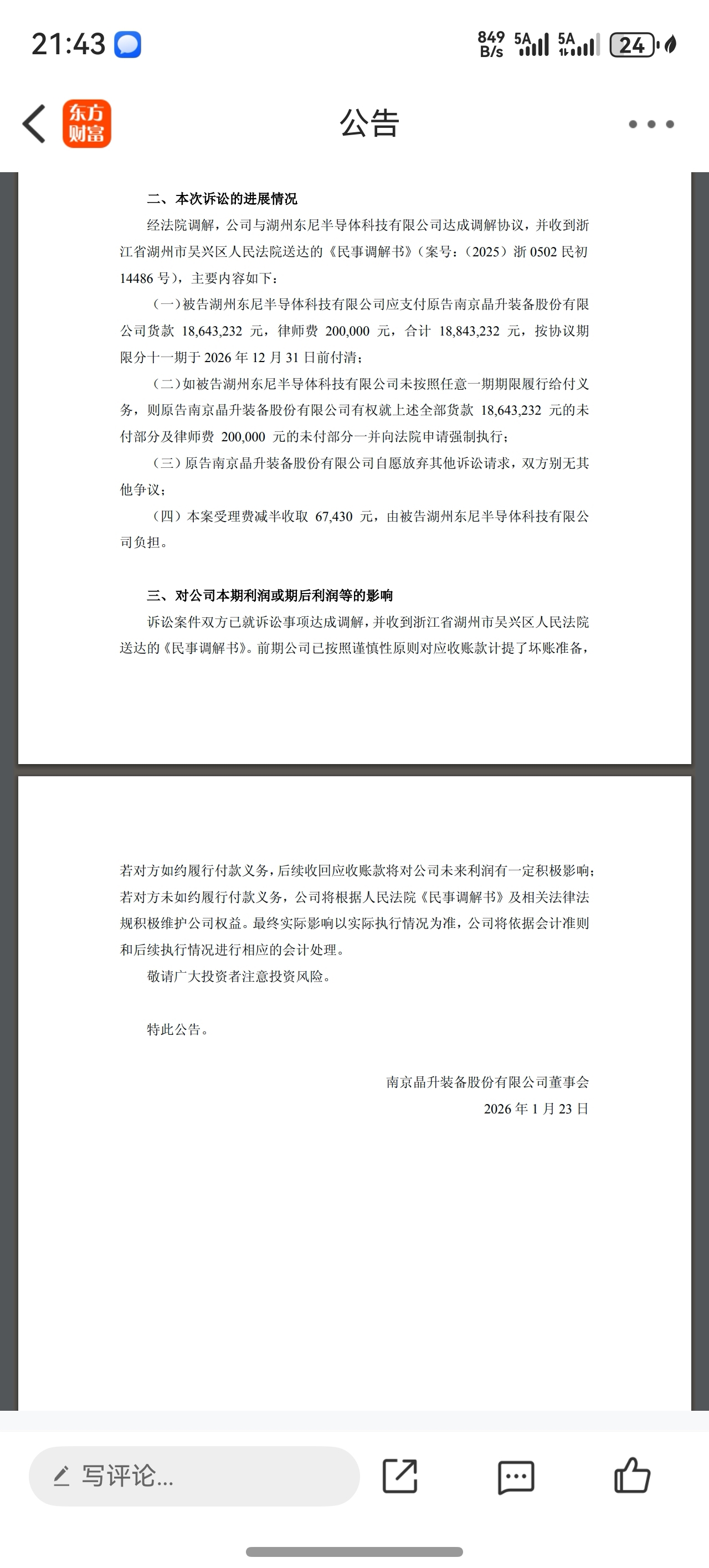 $ST东尼(SH603595)$ 为什么东尼没公告,看不起0.18亿的钱吗
