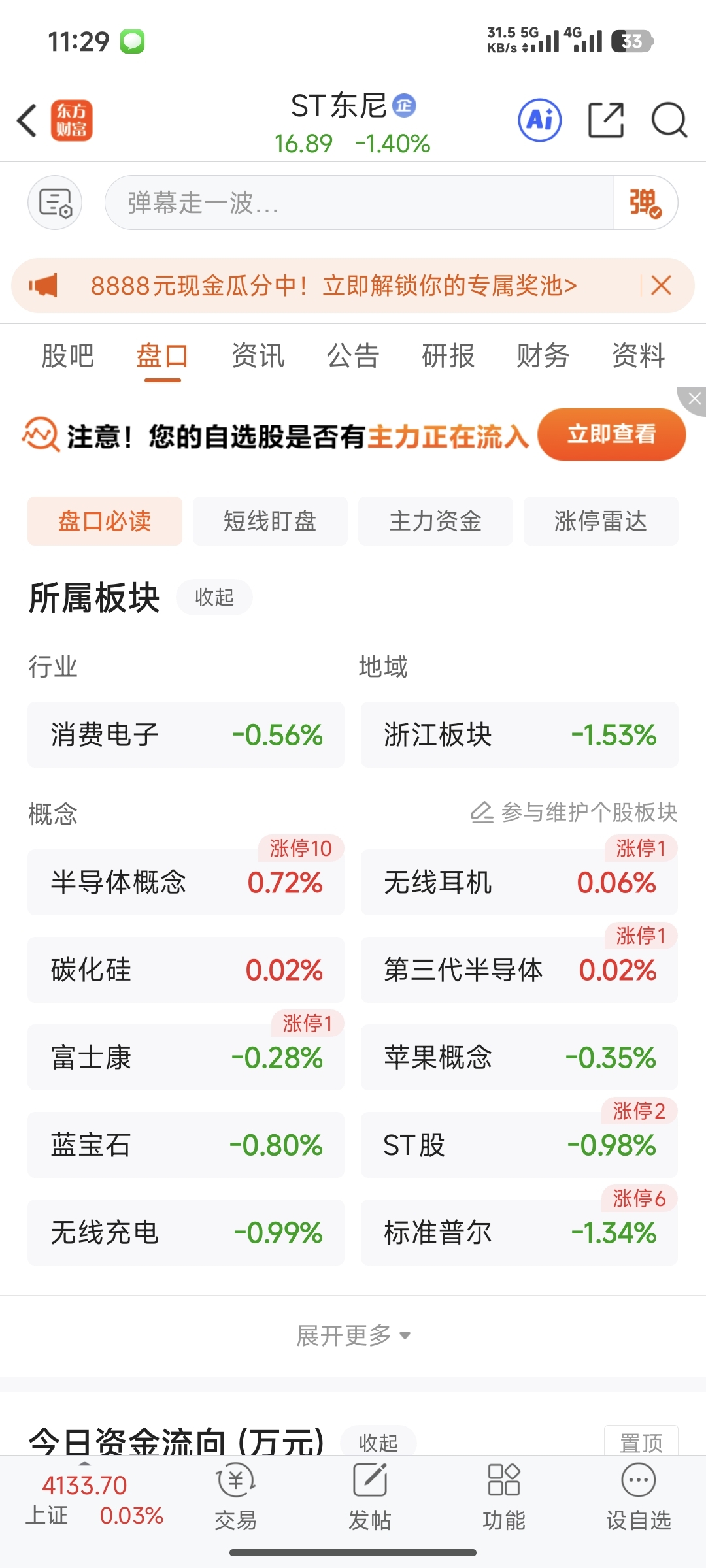 $ST东尼(SH603595)$ 典型无主力的弱势股,下跌时紧跟最猛的板块,上涨时则跟最差的板块。人气越来越低,资金逐步割肉离场,这个过程至少以年为单位。