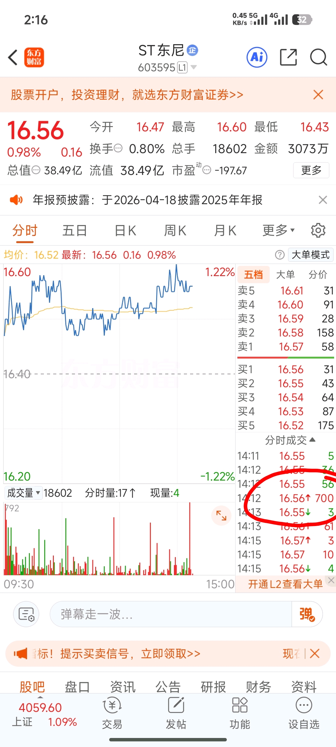 $ST东尼(SH603595)$ 买盘力量几乎彻底衰竭。没有人愿意多花钱往上买,只剩下里面被套的散户想着低买做差价。偶尔还有一些莫名其妙的老鼠仓瞬间成交。后面估计要拉一坨大的。大家要有心理准备。