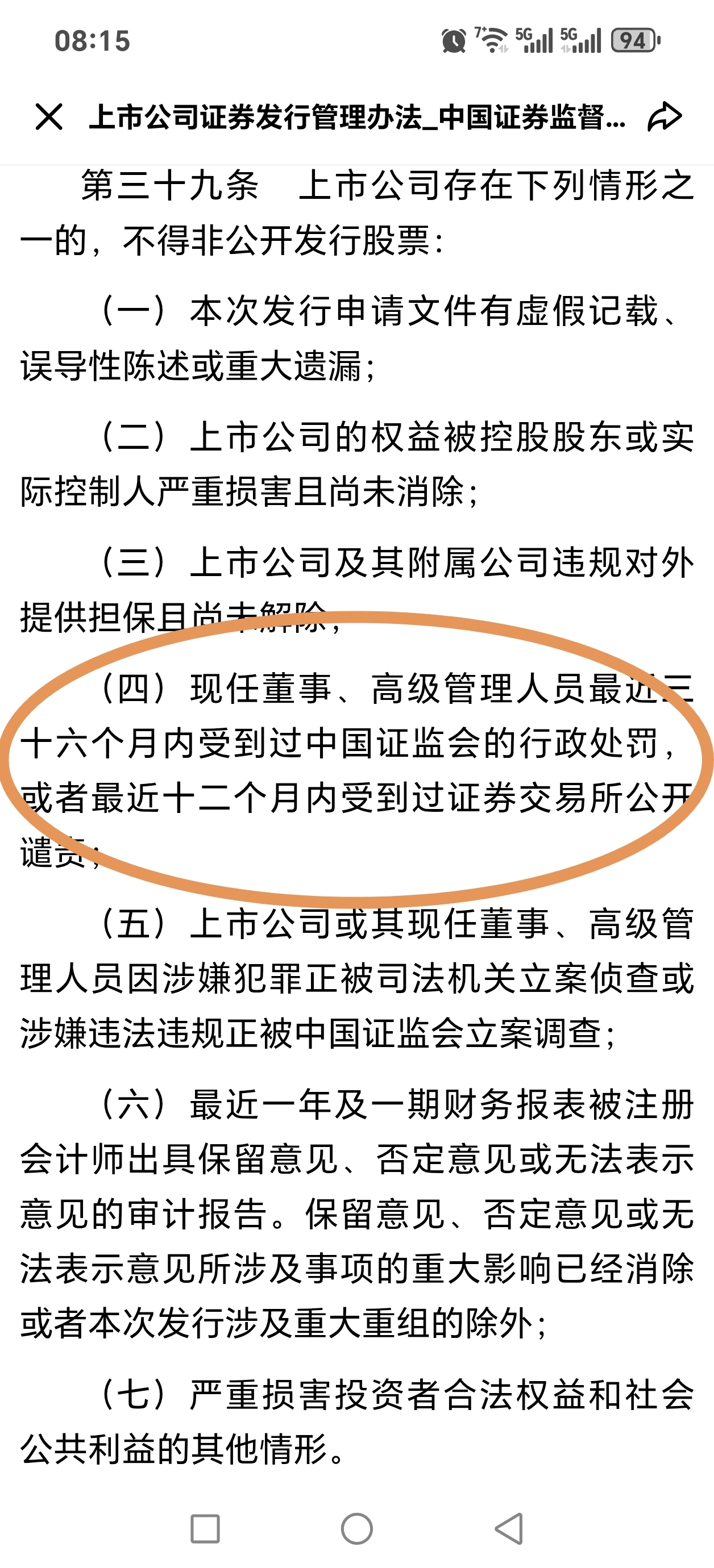 刚查了相关文件,董事长总经理沈晓宇受到行政处罚,三年内无法增发,东尼让出新能源的